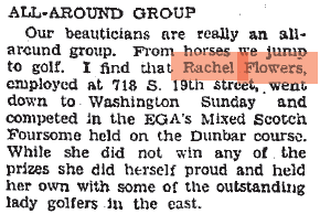 Also in a photo of Ms. Flowers she is listed as being in the Quaker City Golf Club: