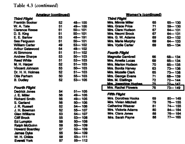 .There she was, I know the last numbers mean score, but I am not sure about the other numbers or whether her score was good or bad, yet that did not matter, I found her in a book. AND to make sure that this was her, I notice that the article in the Chicago Defender was from this UGA championships, so I made sure that some of the other golfers reference in the article were also on the list.