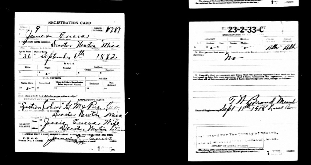 I will end this post with the WWI Draft of James/Jim Evers.
