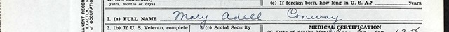 Mary Adell Conway’s mother was Lydia Bradley and her father was Harry Flowers. Her husband was George Conway and his name solved one of the biggest mysteries in this research. As in most obituaries, Harry’s surviving children were listed. The trouble came when their was an additional child listed, Mrs. George Conway.