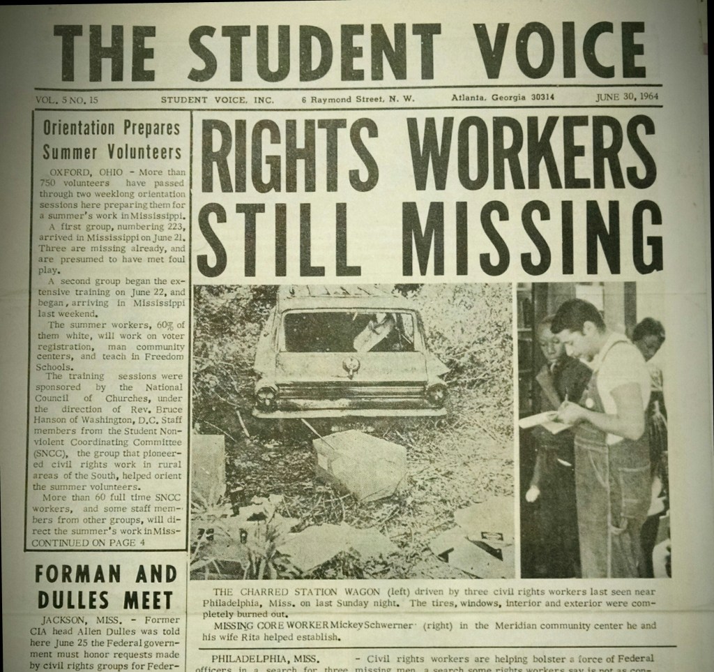 During her time with Freedom Summer, Geraldine kept record of the events occurring in the South involving missing and murdered blacks and civil rights activists. Most of the newspaper articles within her private archival collection were from The Student Voice, the official newspaper of the Student Nonviolent Coordinating Committee (SNCC). The Student Voice released its first publication in June 1960. Their goal was to provide the student movement with a “system of flash news to alert the nation of emergencies and serious developments.” The last publication of The Student Voice was issued in December 1965. You can read all issues of The Student Voice here.