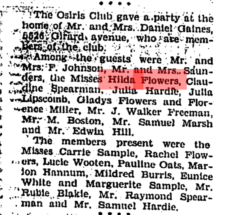 Although HIlda and Gladyce were not members of the Osiris Club they did attend as guest to the organization’s events. Philadelphia Tribune, June 4, 1931