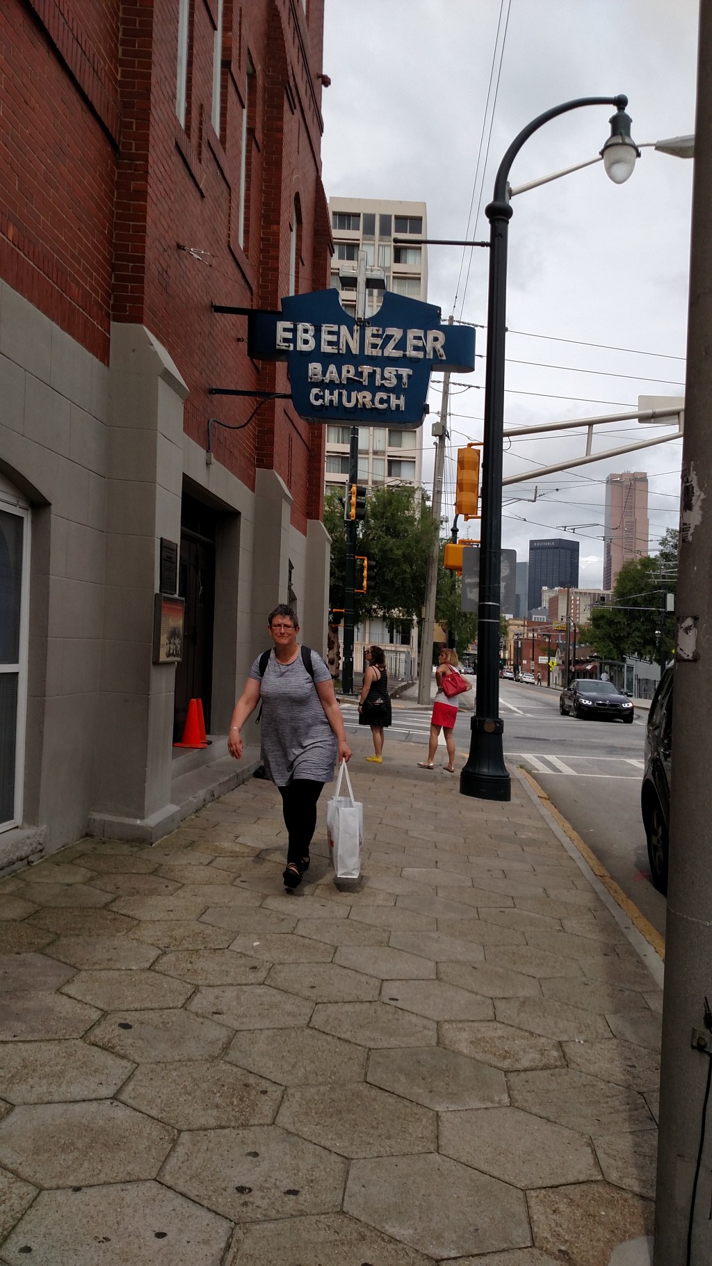 Following this visit, I continued to Ebenezer Baptist Church where King Jr. preached under his father, Daddy King. This is the site of a visionary, a dreamer, but also the site of pain and death. In 1974, King’s mother was murdered in the church as well as a deacon. Three other members were wounded. On the fourth pew from the back on the left side of the church, you can still see where the bullet went through the pew.