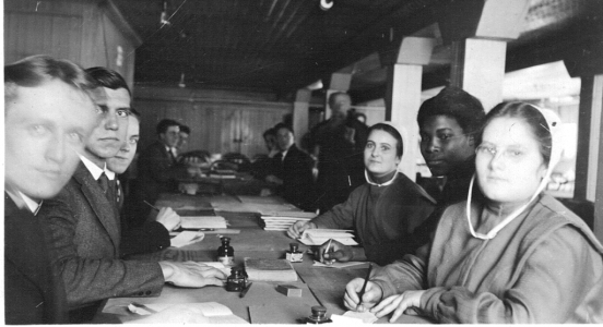 As I prepared for the Rachel Helen Flowers Centennial Celebration, I re-examined Rachel’s biography, particularly my initial research question, what brought her to Messiah Bible School and Missionary Training Home? Two days before my keynote lecture (YES TWO DAYS BEFORE), I found a possible answer. Let’s turn to the image above. Rachel sits between Anna (Lane) Hostetter and Elizabeth Kraybill in either a study period or class.
