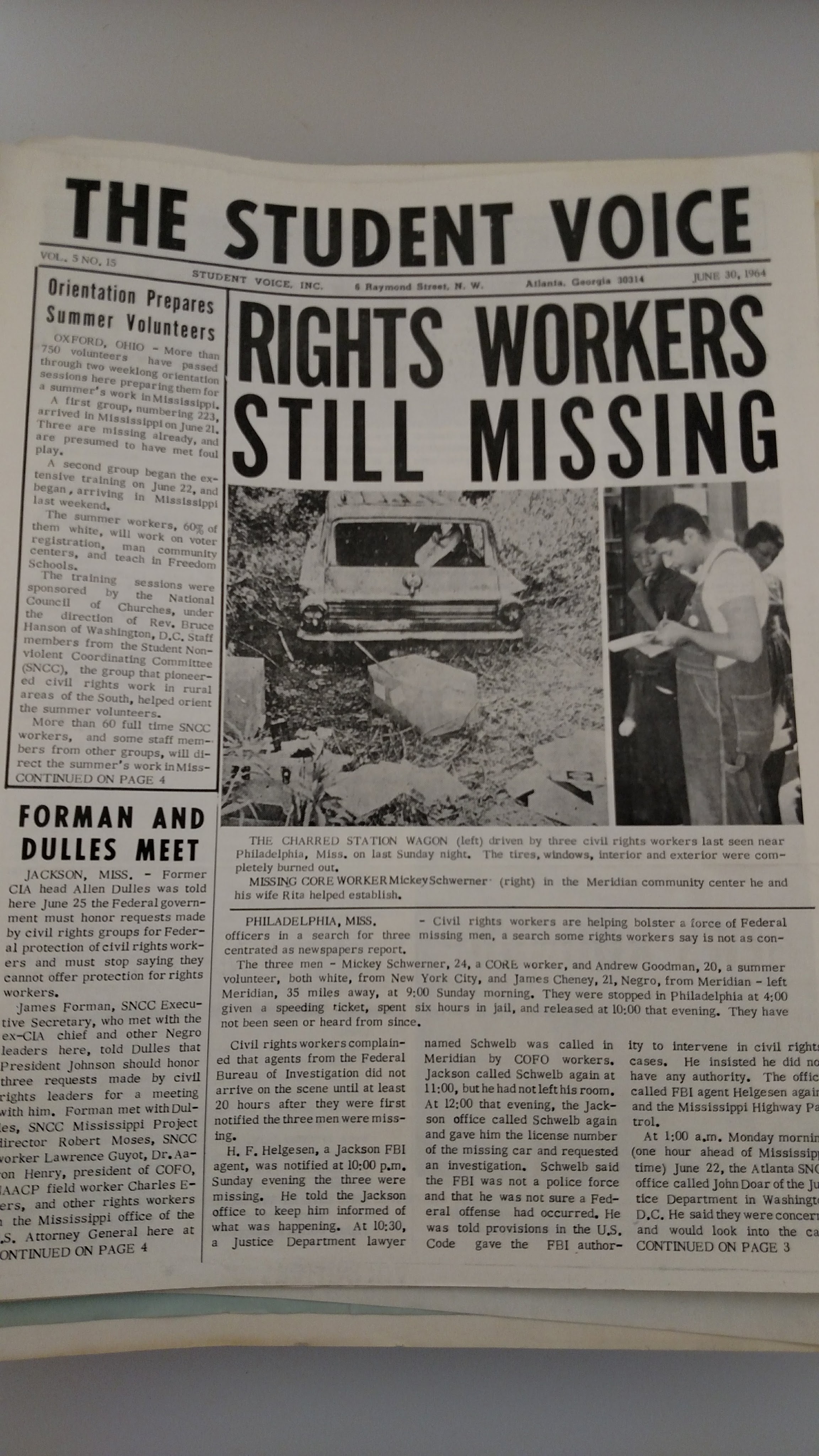 In Liberated Threads: Black Women, Style, and the Global Politics of Soul, Tanisha Ford referenced the “eclectic archive” she assembled in her study of Black women and style. I think many of us who study the lives of Black women encounter such rich archives. Wilson’s archival papers not only share her educational work, but these eighteen boxes are poems and writings of her childhood, her womanhood, and her Blackness. Within these papers are her scrapbooks filled with newspaper articles detailing civil rights matter across Jim Crow America in the 1960s. One headline that caught my eye was “Rights Workers Still Missing” from The Student Voice, the Student Non-Violent Coordinating Committee’s (SNCC) newspaper. It was published in June 1964, just a few months before she traveled to Mississippi with SNCC to work with Freedom Schools and Tougaloo College. For over twenty years she kept the newspaper and other articles documenting the movement for herself to always remember.