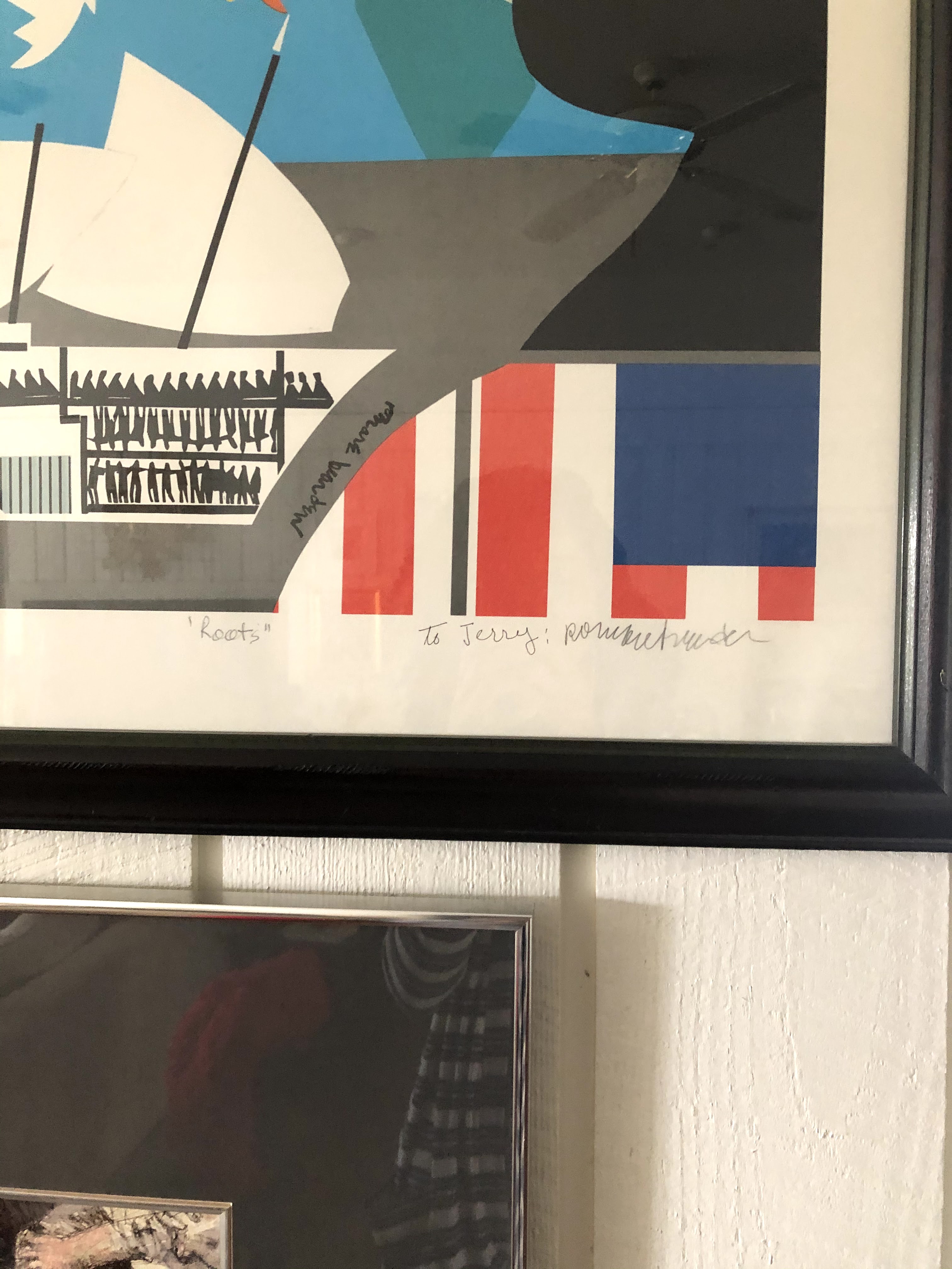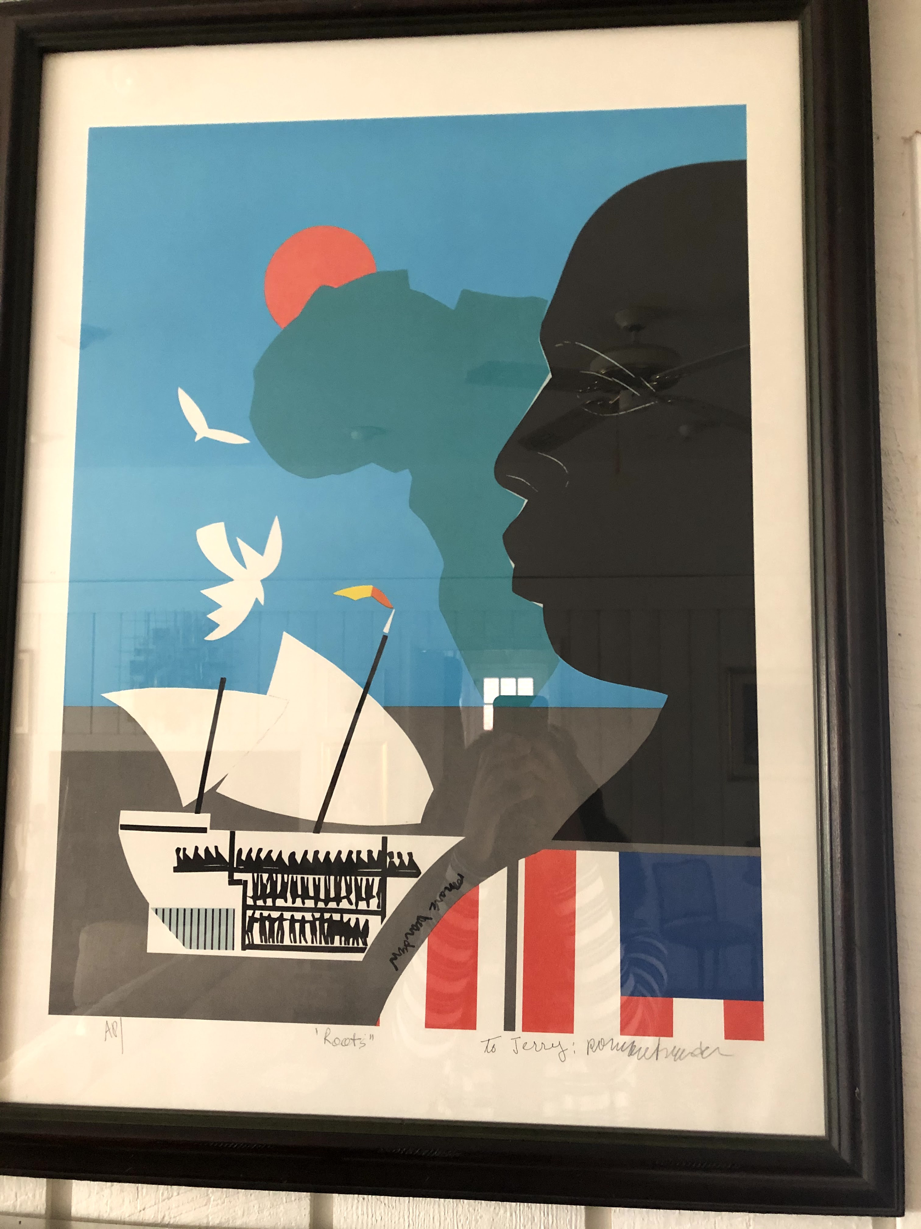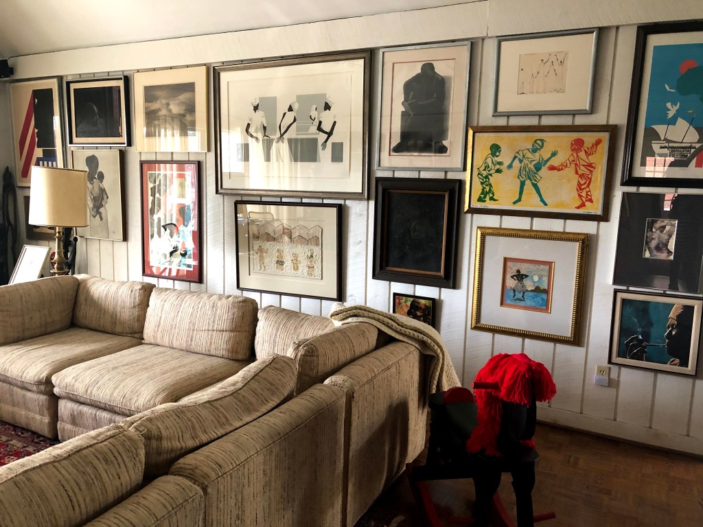 I find pieces of Wilson’s archive in the homes of her friends. Following an interview with her friend and colleague, Marj, I ask for a tour of her home in Florence, South Carolina. We walked into her living room and before me stood a large wall full of a Black art. “This one,” she told pointed out to me, “Romare Bearden gifted this to Gerry after she wrote an article about his work.” To Jerry, Bearden signed on the bottom of the print. She showed me a purple scarf that belonged to Geraldine, who loved to wear any and every color Marj shared.