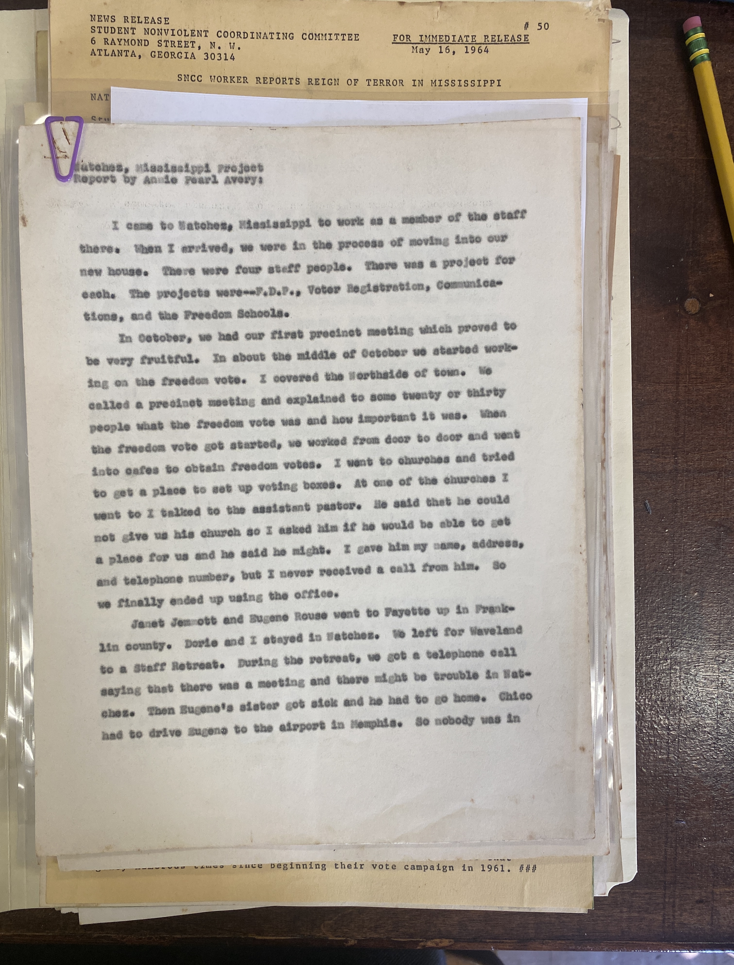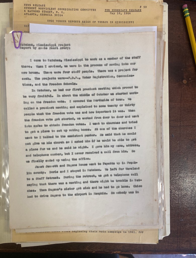 So of course, when I processed a folder—“Adams County-Natchez”—the first document is a report by Ms. Avery.